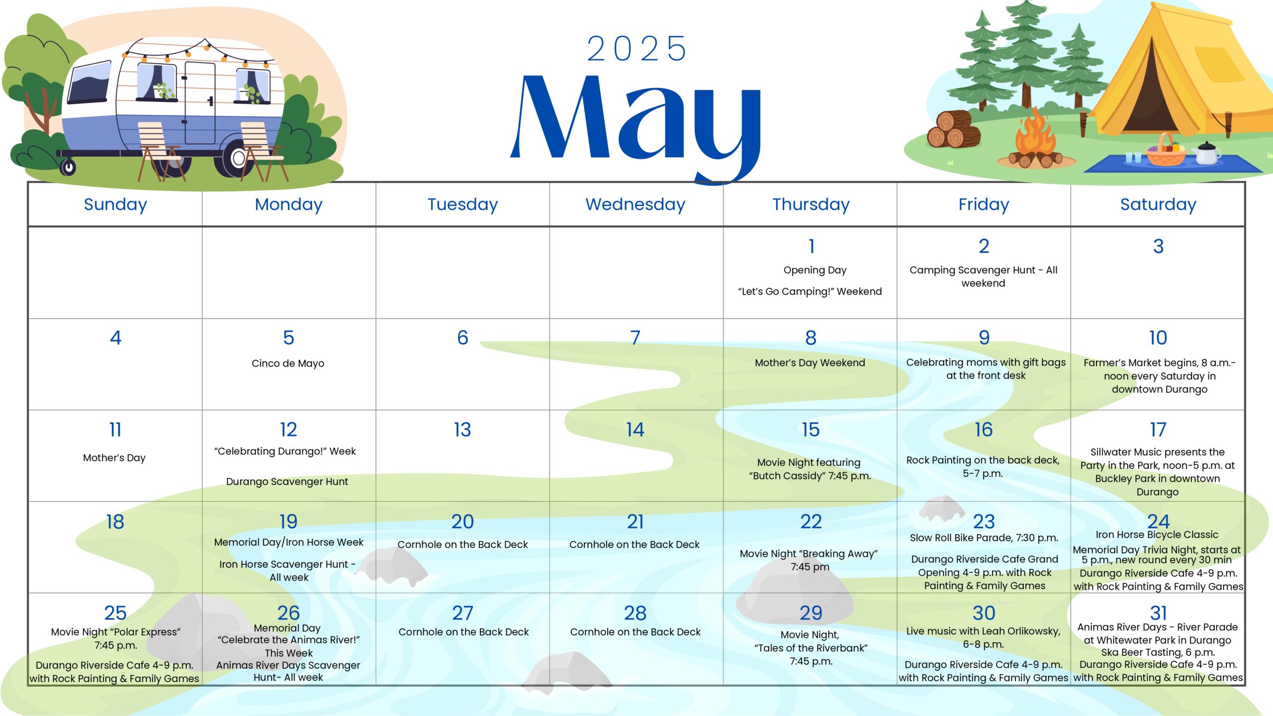 You may choose to stay in one of our rustic cabins, vacation rentals, riverfront RV sites, spacious super-sites, or tent sites. With so much to enjoy, you’re sure to have a memorable stay with us at Durango Riverside. Keep the memories fresh by visiting our camp store for souvenirs to take the fun home!